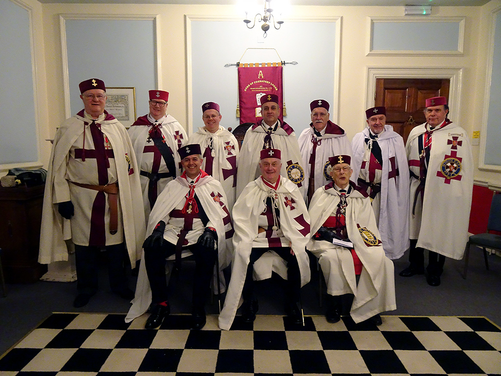 This photo is from the meeting held 28th January 2023. At the meeting Southgate Preceptory welcomed a new member. Southgate Preceptory meets at the Southgate Masonic Centre.