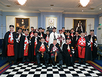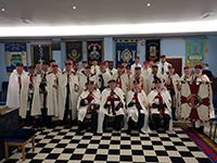 The Arch of Steel Preceptory is the Provincial Prior's Bodyguard and accompany the Provincial Prior and Sub-Prior on official visits. As a Preceptory they also work the Malta Degree regularly. The picture shown is from their meeting held 28th February 2017 at which three Knights were the candidates. Arch of Steel meets at Twickenham.